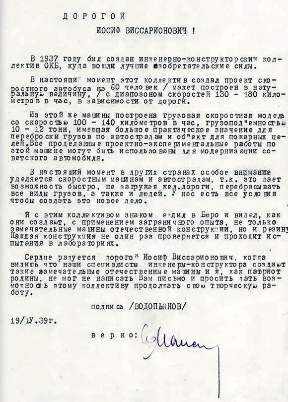 Главных действующих лиц было двое – инженеры С.Д. Макаров и В.Г. Кульчицкий. Именно они в начале 1938 года проявили инициативу и обратились прямо к товарищу Сталину с предложением о создании советских скоростных автомобилей. Из секретариата Сталина письмо, очевидно, с резолюцией о содействии переслали в Промышленный отдел ЦК ВКП(б), а оттуда – в Народный комиссариат машиностроения, которому подчинялась автомобильная промышленность.