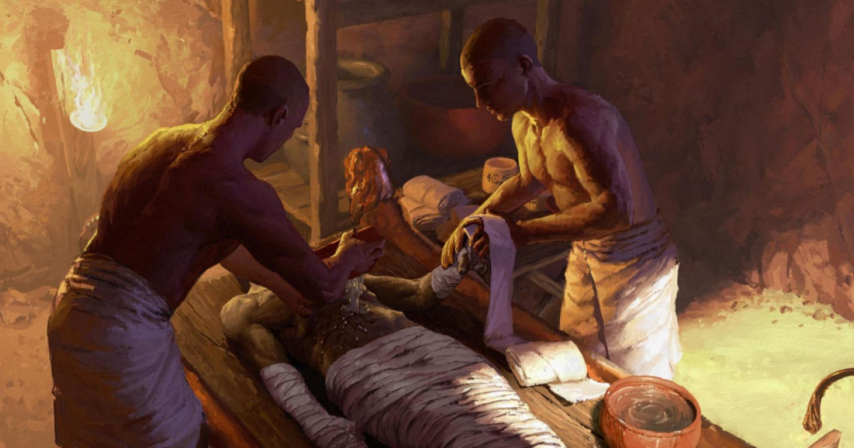 Известно, что уже в эпоху Древнего царства бальзамировщики успешно справлялись с мумификацией тел. Они понимали, что внутренние органы сохраняются гораздо хуже, чем кожа или мышцы, поэтому их удаляли, а само тело высушивали, после чего оборачивали в ткани, пропитанные смолами и маслами. В более позднее время бальзамирующие вещества начали наносить и на кожу, стали удалять головной мозг, а сама процедура стала еще искушеннее и сложнее.