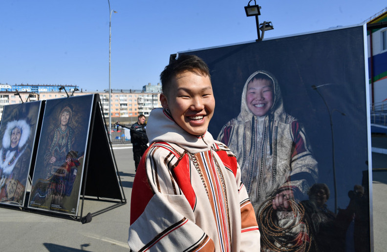 Дипломатов, сотрудников и посетителей швейцарского отделения Организации Объединенных Наций встречает улыбка Вениамина Безруких — представителя коренного народа таймырского севера. Портрет юного долганина, жителя крошечного поселка Усть-Авам, в дар Женевскому офису ООН этнофотограф Александр Химушин преподнес от своего имени и от имени компании «Норникель». Именно эта работа стала настоящим хитом на фотовыставке проекта The World in Faces в Женеве осенью 2021 года. Лицо Вениамина настолько открытое, улыбка настолько лучезарная, а смех настолько заразительный, что не улыбаться в ответ, глядя на фото, практически невозможно.