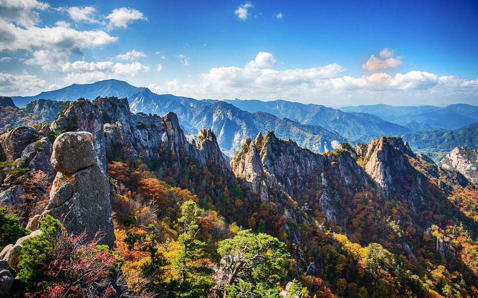 В первую очередь нужно посетить национальный парк Сораксан — природный заповедник площадью 398 квадратных километров, где расположены 30 пиков, самый высокий из которых — Тэчонбон — достигает 1708 метров в высоту. Оттуда открываются потрясающие виды на окрестности. По территории Сораксана проложены десятки трекинговых маршрутов — как для опытных и подготовленных туристов, так и для новичков.