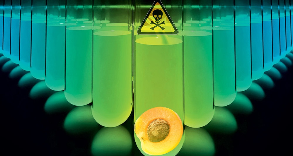 Персик, как и еще две с половиной сотни растений, среди которых миндаль, вишня, черешня, слива, относится к роду сливы. В косточках плодов этих растений содержится вещество амигдалин — гликозид, прекрасно иллюстрирующий понятие «летальный синтез». Этот термин не совсем корректен, более правильно было бы назвать явление «летальным метаболизмом»: в его ходе безобидное (а иногда даже полезное) соединение под действием ферментов и других веществ расщепляется до сильнодействующего яда. В желудке амигдалин подвергается гидролизу, и от его молекулы отщепляется одна молекула глюкозы — образуется пруназин (некоторое его количество содержится в косточках ягод и фруктов изначально). Далее в работу включаются ферментные системы (пруназин-β-глюкозидаза), которые «откусывают» последнюю оставшуюся глюкозу, после чего от исходной молекулы остается соединение манделонитрил.
