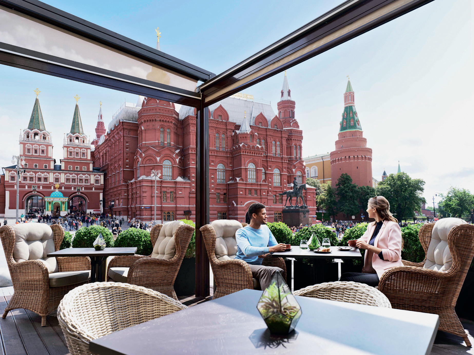 Насладись видом. Каждый год летняя терраса отеля Four Seasons Hotel Moscow, с которой Кремль, Манежная площадь и Исторический музей видны как на ладони, становится одним из центров ресторанной жизни столицы. В этом сезоне нас ждет новое меню, DJ-cеты по выходным и особая коктейльная карта – путеводитель по самым интересным местам города. Вместе с авторскими напитками ты получишь от команды отеля рекомендации, какие достопримечательности Москвы стоит посетить этим летом и с какого удивительного ракурса их можно увидеть.