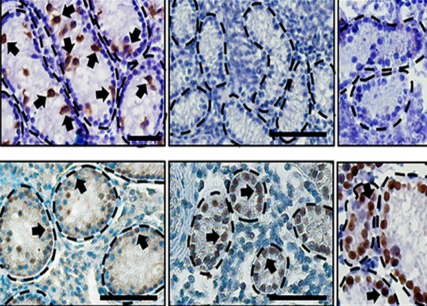 Вторая проблема касается стерилизации потенциальных реципиентов стволовых клеток. Их собственное семя должно быть полностью уничтожено, чтобы избежать конкуренции с материалом донора, при этом репродуктивная система должна нормально функционировать. В экспериментальных моделях это решалось локальным облучением семенников или химической стерилизацией препаратом бусульфаном. Однако эти методы приводят к накоплению мутаций в клетках репродуктивной системы, к тому же не гарантируют стопроцентной стерильности.