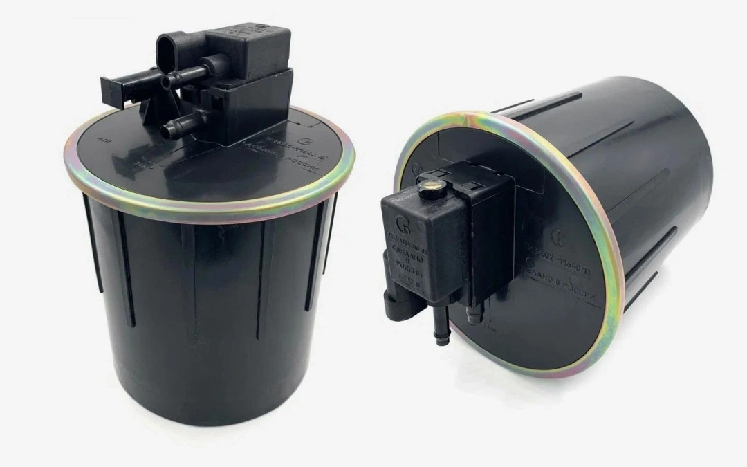 Деталь представляет собой герметичный пластиковый бочонок (или короб) с находящимися внутри гранулами активированного угля — собственно, сорбентом. К бочонку подведена воздушная магистраль от бензобака, по которой поступают бензиновые испарения.