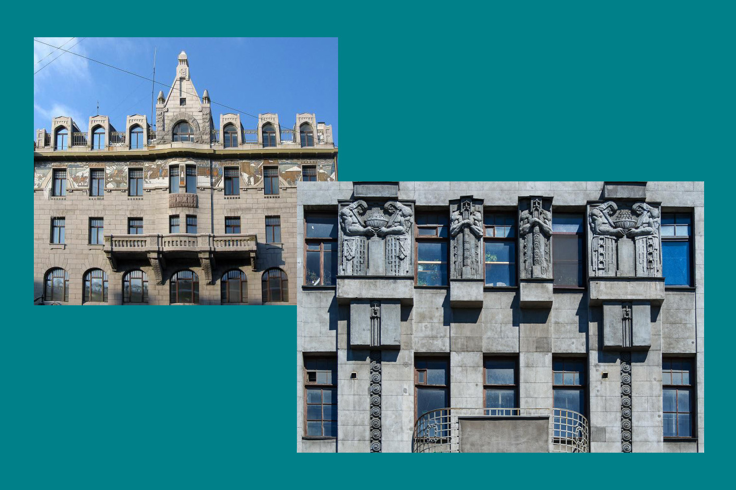 - Первая версия — это вариант франко-бельгийского модерна, представленный в работах Шехтеля, Кекушева и других архитекторов.