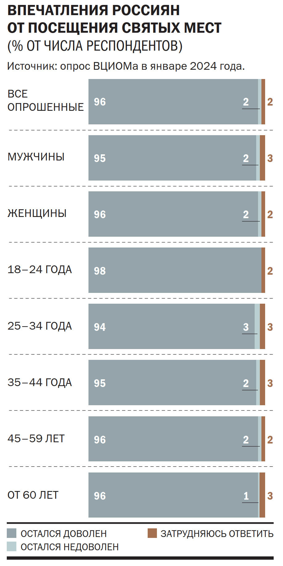 Паломнические поездки — популярное направление туризма. По опросам ВЦИОМа, проведенным в начале 2024 года, святые места в общей сложности посещали 43% россиян. Показатель постоянно растет: десять лет назад, в 2014 году, подобные поездки совершали лишь 26%, а в 2020 году — 31%. При этом 96% паломников остались довольны своим опытом, а 70% готовы совершать подобные поездки и в будущем. Рост популярности паломнических поездок аналитики ВЦИОМа объясняли бумом внутреннего туризма и ростом «интереса к ненаучным способам взаимодействия с миром».