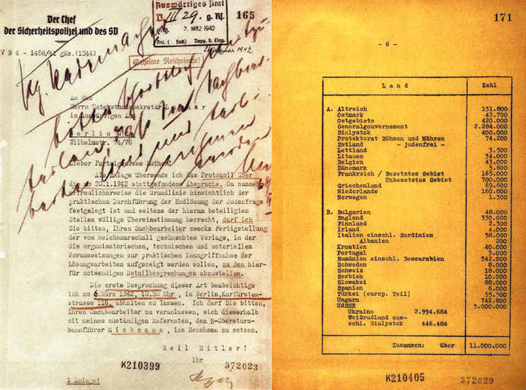 20 января 1942 года группа министерских служащих, чинов СС и партийных функционеров НСДАП прибыла в Ванзее на секретную конференцию, организованную начальником Главного управления имперской безопасности, обергруппенфюрером СС Рейнхардом Гейдрихом. Её участники (всего, включая самого Гейдриха, их было 15) «синхронизировали» уже налаженные к тому времени алгоритмы уничтожения еврейского народа.