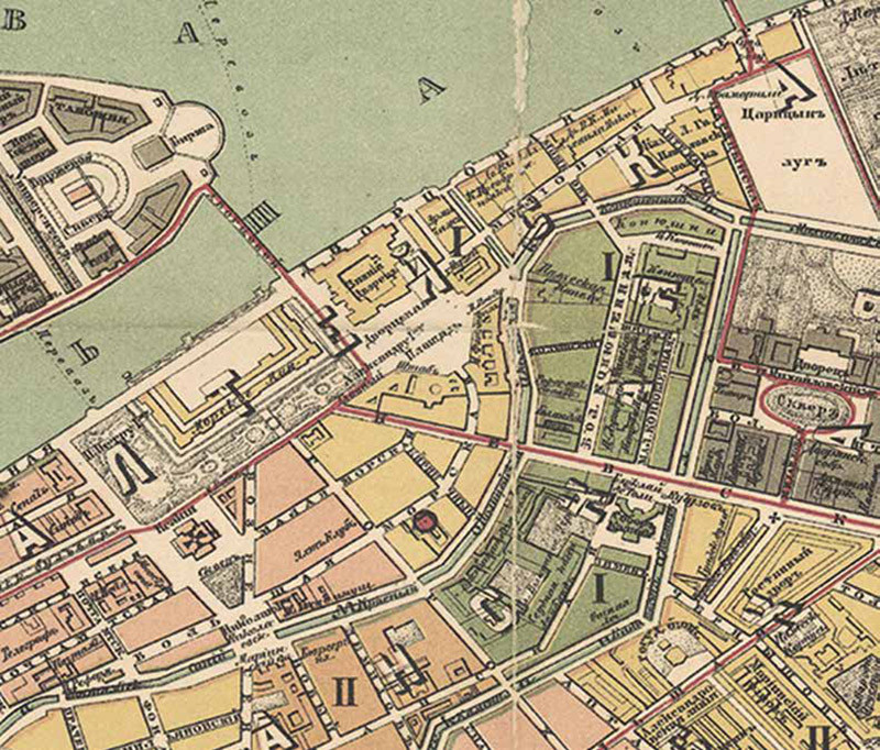 Последние дни Страстной недели, в самый день Пасхи я утром не гулял, по причине холодной погоды. В Понед. же, 2/14го Апр., так как утро было солнечное, я решился пройтись по обыкновенному, но не кругом Дворца, а из Милионной я повернул, по Зимней канавке, кругом здания Гвардейского Штаба, чтобы пользоваться солнцем. Выйдя от Певческого моста к площадке, что между зданием, где живет к. Горчаков4 и следуя по тротуару, вдоль Штабного дома, я заметил человека довольно чисто одетого с кокардой на фуражке, идущего мне навстречу, держа руки в кармане пальто. Кроме его и меня на тротуаре не было никого, но вдоль здания Мин. Иностр. Дел, т.е. в шагах 50 от меня, находилось несколько городовых и пере<о>детых стражников, меня обыкновенно охраняющих. Сблизившись со мною, примерно в 15 шагах, я заметил, что идущий мне навстречу неизвестный, вместо того чтобы снять фуражку, начал вынимать револьвер из правого кармана. Поняв, в чем дело, я бросился бежать от него по площади к Певческому мосту, указав на него рукою. Но прежде чем полициянты могли до него добежать, он сделал по мне один выстрел и догоняя меня вслед за тем еще два и когда я после того обернулся я заметил его за собою в 3 шагах не более. В эту минуту добежал до него жандарм-офицер Кох5 и ударил его саблею, он приостановился, но сделал еще 4ый выстрел и вслед затем 5ый, несмотря на то, что целая толпа его окружала. Следы этого последнего выстрела видны на стене Штабного здания, а одним из предыдущих был легко ранен в правую щеку один из стражников. Я же по милосердию Божьему остался невредим, но так запыхался от беготни, что с трудом мог говорить и рад был сесть в случившуюся под рукою коляску, чтобы доехать домой.