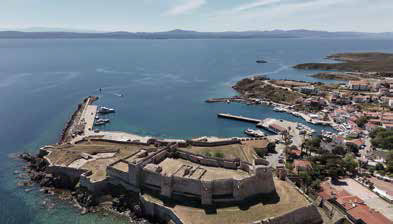 Мы причалили лагом к могучему волнолому, который защищает гавань от превалирующих северных ветров. Прямо над портом возвышается огромная турецкая крепость. На месте древнего города её возвёл Мехмед Завоеватель, тот самый, что захватил Константинополь. Видно, что укрепления несколько раз перестраивали, — в последний раз после того, как в начале XIX века остров взяли русские войска под командованием адмирала Сенявина.