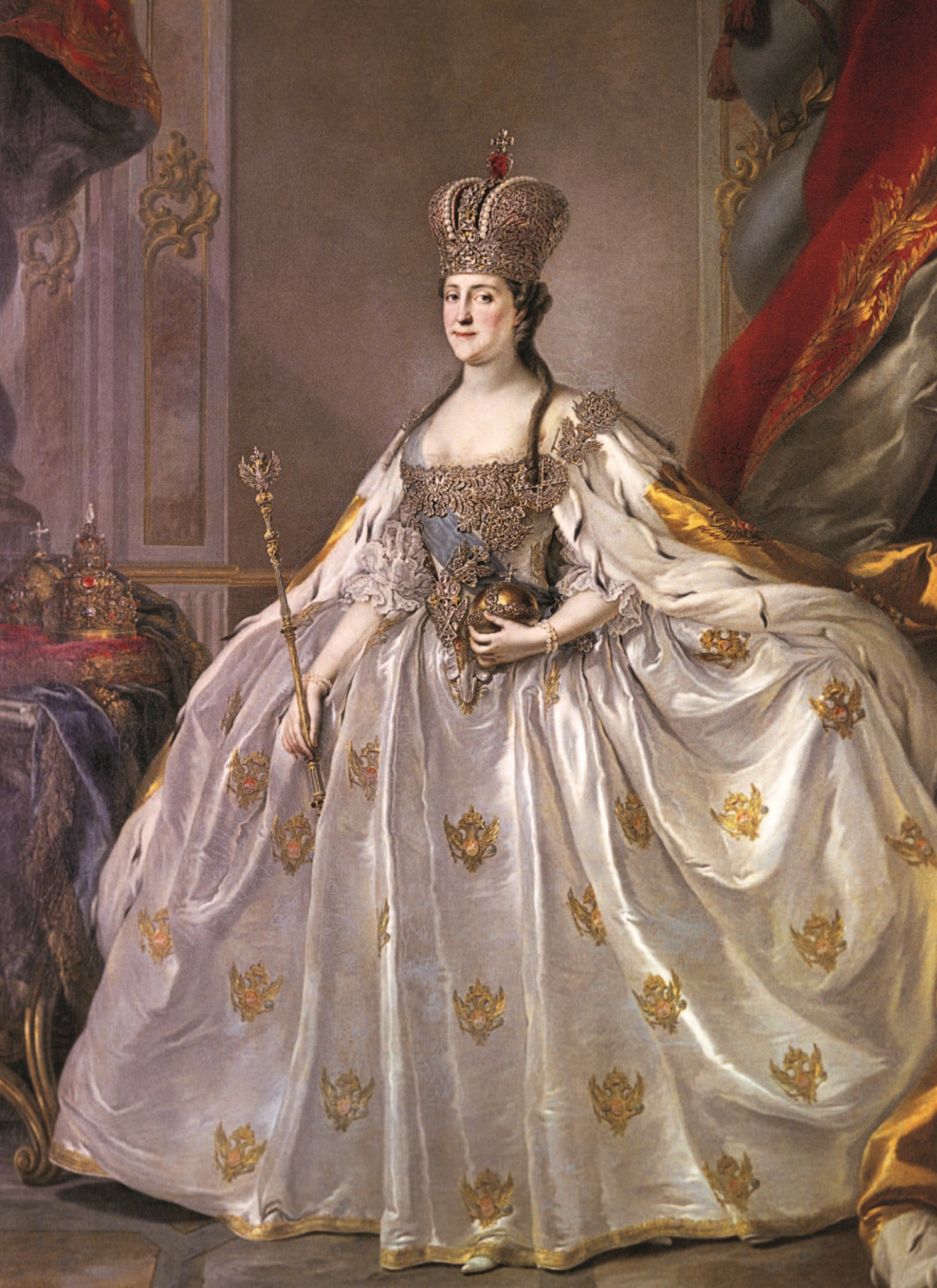 Пётр I был последним из русских монархов, кто короновался шапкой Мономаха. Созданная им империя требовала новых символов власти. А потому Екатерина I венчалась уже новой, Большой императорской короной.