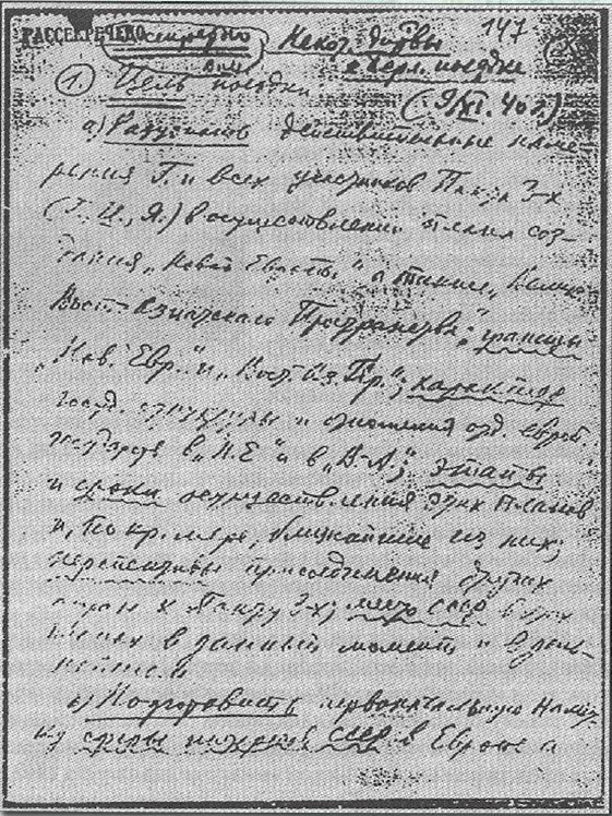 «С. Секретно. В. М. Некот. дир-вы к берл. поездке (9/XI.40 г.)…