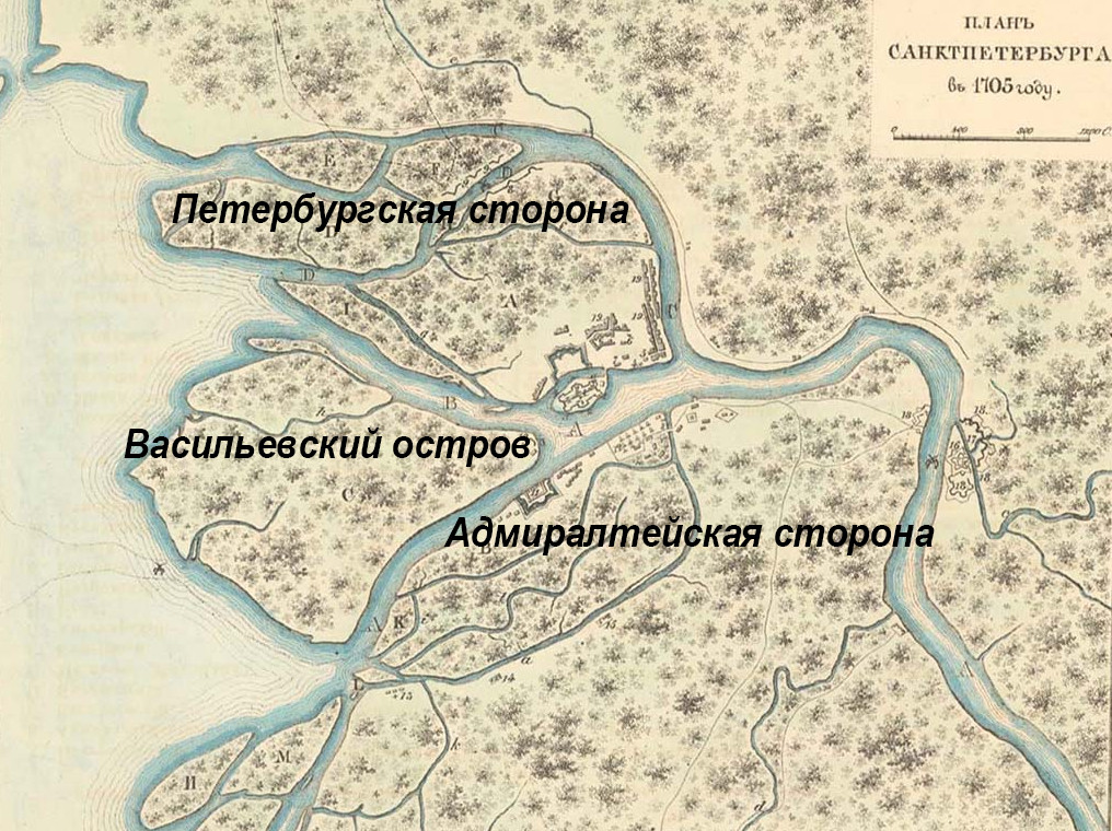 По воле Петра I были подготовлены сразу несколько планов развития Санкт-Петербурга. Царь желал видеть центром города Васильевский остров, на котором вместо улиц следовало проложить судоходные каналы. Однако у этой идеи имелись три серьёзных недостатка: регулярное затопление острова при наводнениях, недоступность сообщения во время осеннего установления ледяного покрова на Неве и весеннего ледохода, а также неготовность большинства горожан передвигаться исключительно на лодках. В царствование Петра II город вообще пришёл в запустение. Лишь воцарение Анны Иоанновны вернуло Петербургу столичный вид. При этом основное строительство с той поры и до конца XVIII века велось на левом (южном) берегу Невы.