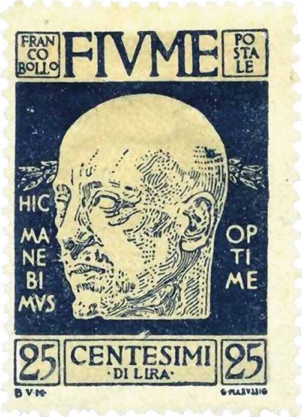 На марке загадочного государства Фиуме — стилизованная под античное изваяние голова и девиз на латыни «Hic manebimus optime». Переводится фраза: «Мы остаёмся здесь» — и принадлежит, если верить Титу Ливию, неизвестному центуриону, остановившемуся у здания сената в критический для Римамомент. Сенаторы посчитали это счастливым предзнаменованием и решили не оставлять осаждённый галлами город…
