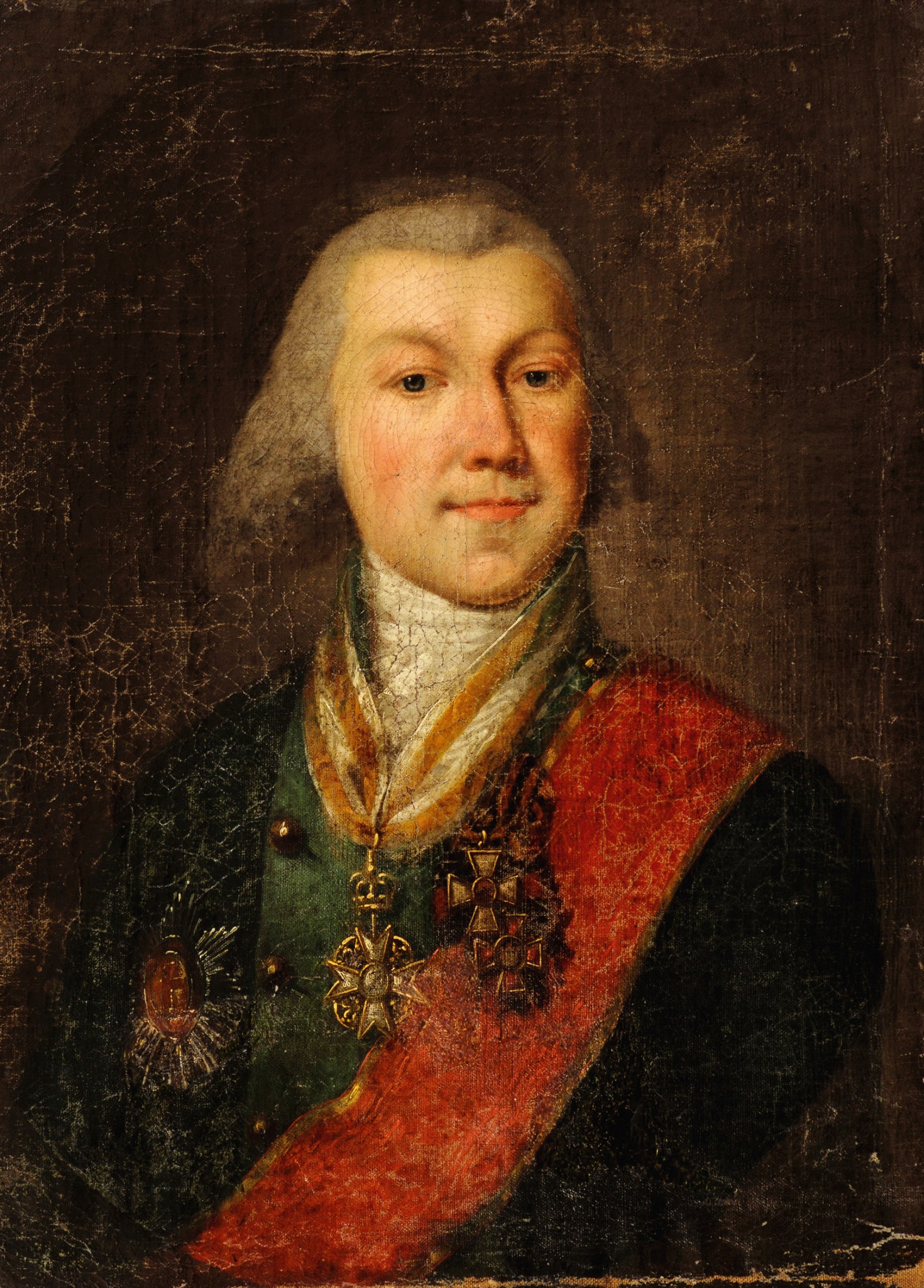 Несмотря на возраст, молодой военный имеет знаки ордена Святой Анны 1-й степени, который вручался только генералам, — красная лента с жёлтыми каймами через левое плечо и звезда на правой стороне груди. Поверх ленты видны два креста орденов Святого Георгия и Святого Владимира 4-го класса, очевидно, полученные за боевые заслуги. Но самая примечательная награда показана на шее генерала — крест прусского ордена Красного Орла. В конце XVIII века его, кроме венценосных особ, имели лишь 15 русских кавалеров. Но девять получили в комплекте с высшим орденом Чёрного Орла. Из оставшихся шестерых лишь один имел показанные русские награды — князь Алексей Иванович Горчаков.