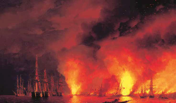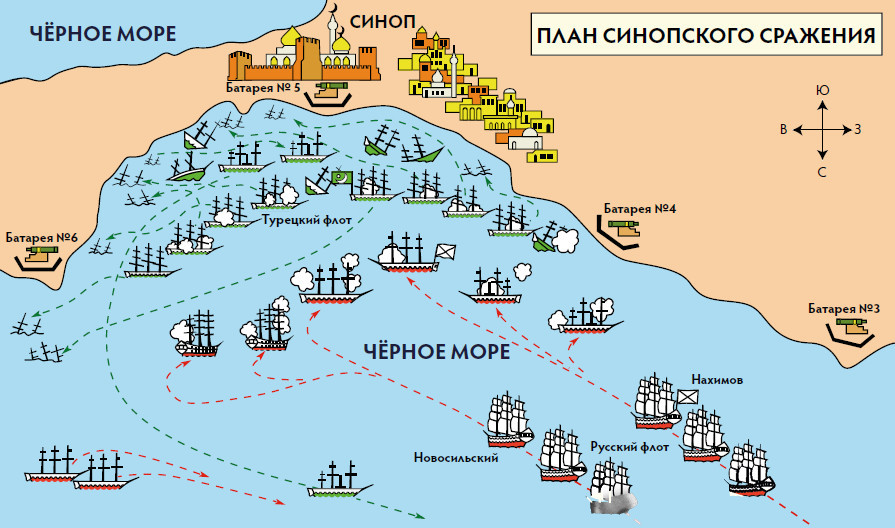 Командующий Черноморским флотом адмирал Филипп Октябрьский распорядился на основе моторной баржи построить парусный корабль, который при досъёмках будет флагманом и русского, и турецкого флотов, а также выделил двести матросов для массовых сцен. В таких благоприятных условиях Пудовкин сумел расцветить свою работу батальными сценами.