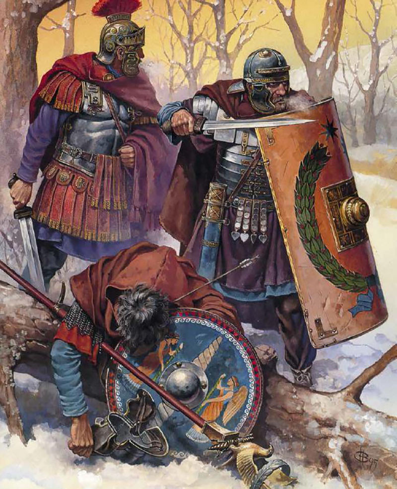 А в 9 году легионеры потерпели одно из самых тяжких поражений в истории противостояния с германцами. К тому времени казалось, что сопротивление племен на землях от Рейна до Эльбы наконец-то сломлено. Командующий легионами Квинтилий Вар приблизил к себе молодого германца по имени Арминий. Этот варвар был предводителем вспомогательной конницы в римском войске и пользовался безграничным доверием имперских властей.