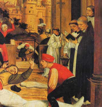 Наиболее известная эпидемия Средних веков затронула самые отдалённые уголки Европы. Многие города пришли в полное запустение. Одновременно начались погромы. В соответствии со средневековыми предрассудками, главными виновниками распространения заразы считали евреев и прокажённых.