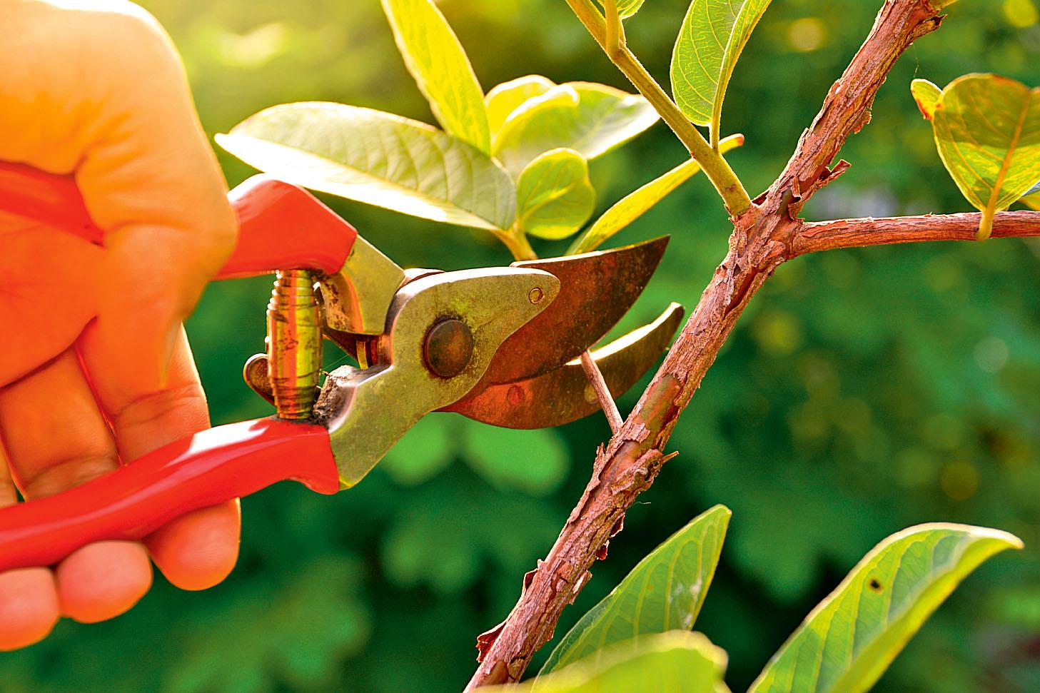 Для обрезания (и укорачивания) веток диаметром до 20 мм используйте секатор. Можно купить модель с аккумулятором, которая сделает за вас практически всю работу и обеспечит аккуратный срез. Толстые ветки (до 40 мм) лучше удалять сучкорезом с длинными ручками, а скелетные (от 40 мм и больше) — садовой пилой. Зубья этого инструмента заточены с обеих сторон и разведены шире, чем у столярной пилы для сухой древесины.