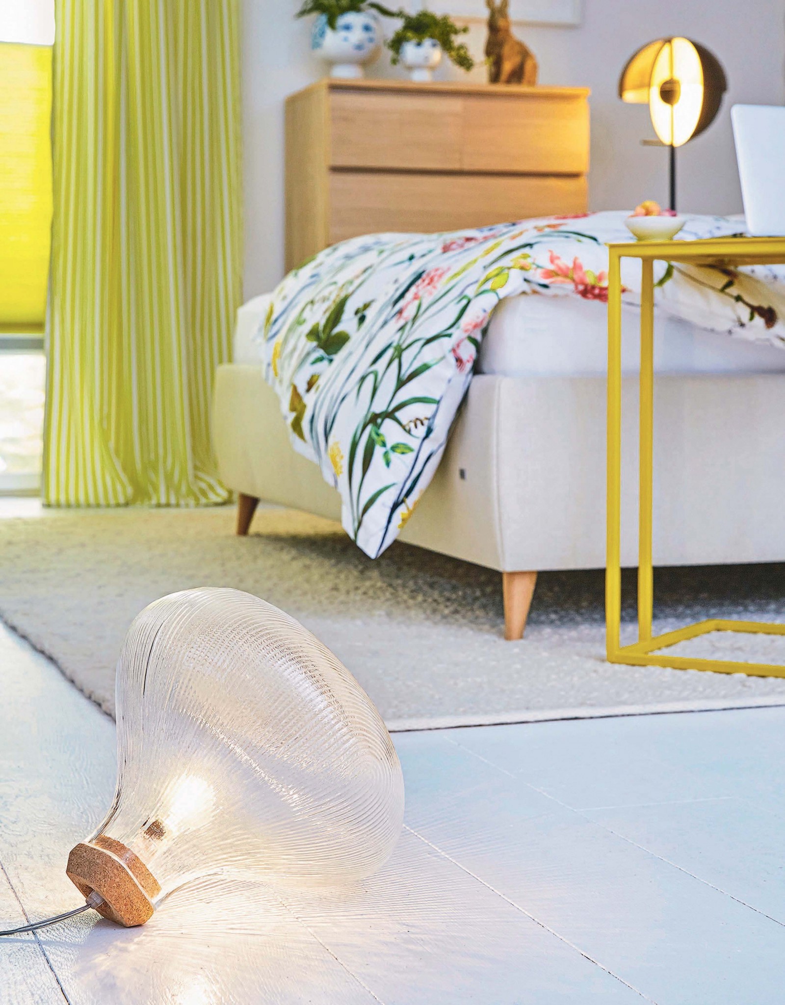 Средний уровень. Настенные светильники, прикроватные лампы, дополнительные светильники на низких подоконниках, торшеры.