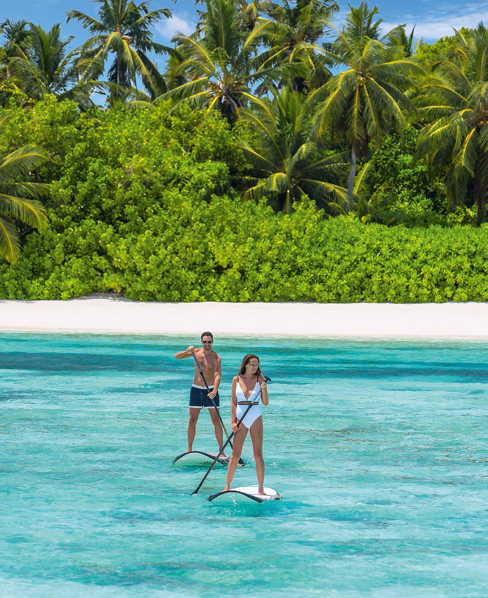 Едва ступив на причал, вы понимаете, что оказались внутри открытки – вокруг пальмы, бирюзовая вода, белоснежный песок, а у вас в руках белые цветы франжипани и кокосовое молоко – приветствие от отеля.