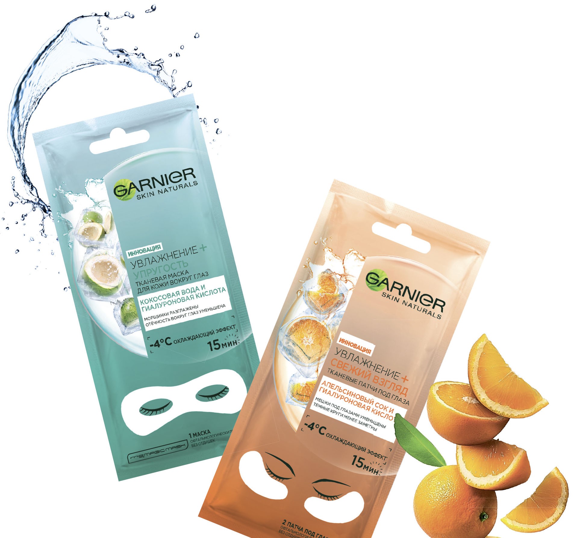 Тканевые маски Garnier – «Увлажнение + Свежий взгляд» и «Увлажнение + Упругость» – это SOS-средства для глаз: они быстро устраняют отеки, разглаживают мелкие морщинки и возвращают молодость взгляду.