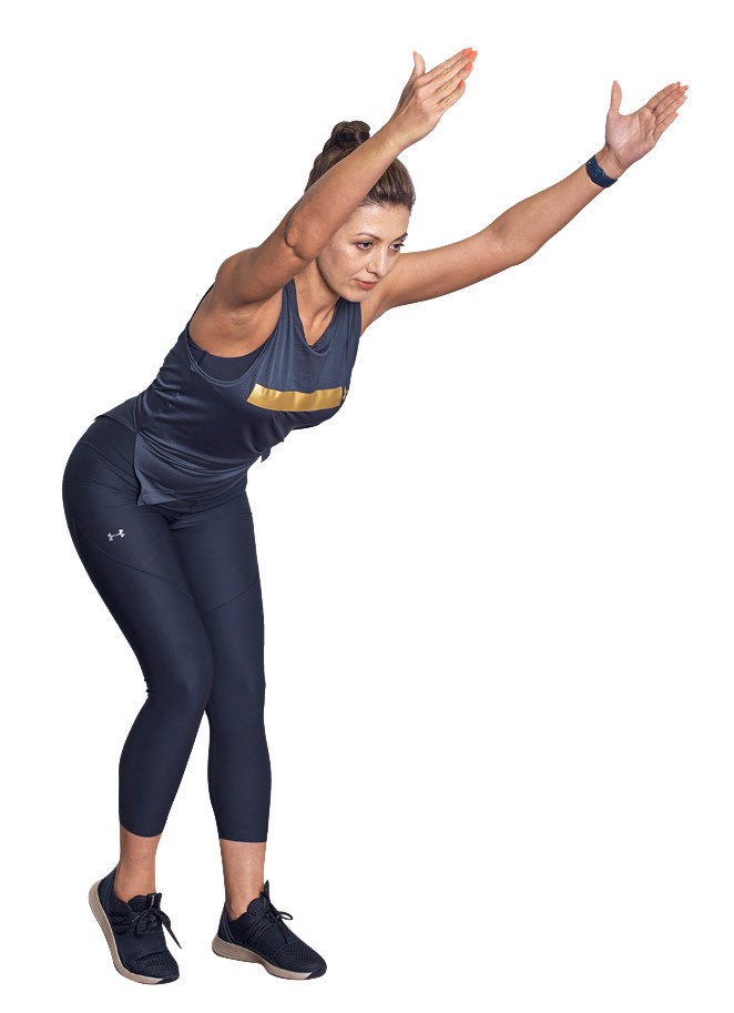 2. Вытяните руки перед собой, тем самым вы загружаете плечи.