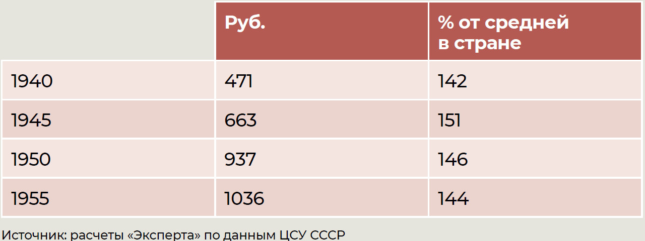 Зарплата ученых была самой относительно высокой. В среднем по стране рабочие и служащие получали в 1940 году 331 руб., тогда как научные работники — 471 руб., на 42% больше. В 1945 году разница выросла до 51%: 663 против 439 руб.
