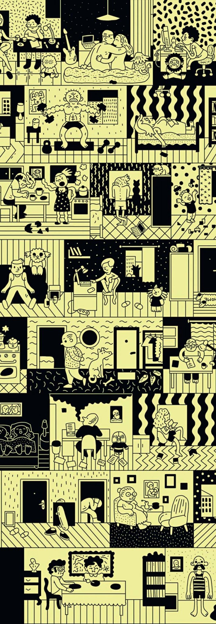 Тштштштштшттштшт – это закипает электрический чайник. Еще я слушаю – постукивание по клавиатуре, пиканье сообщений, жужжание электрической кофемолки, заоконные крики и машинные рыки, журчание унитаза, бормотание застенного радио, подвывание и постукивание стиральной машины и, конечно, жиличкины движения. Если застыть на месте и дышать потише, то можно услышать этот звук домашней тишины, собранный из текущего в проводах электричества и общего гула всех людей на свете.