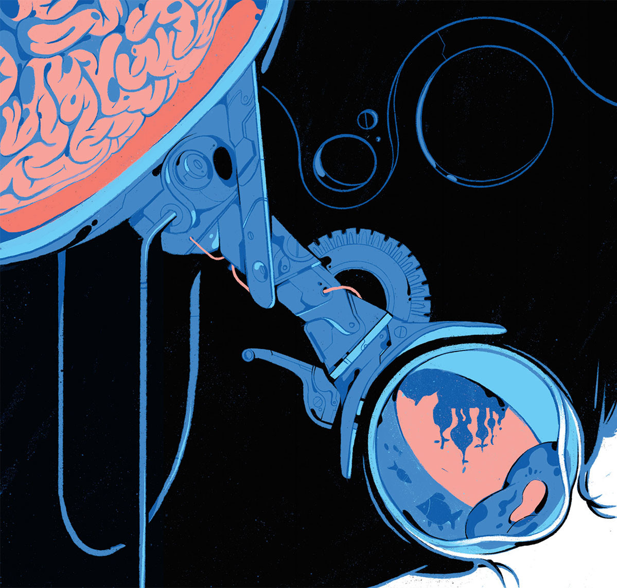 Он нажал пару кнопок – послышался звук: тр-р-р-р-р. Сергей Петрович повернул монитор, Олег увидел свой глаз крупным планом, затем камера словно бы нырнула в зрачок – внутри было мутно, и вдруг по сетчатке скользнула тень, и еще одна.