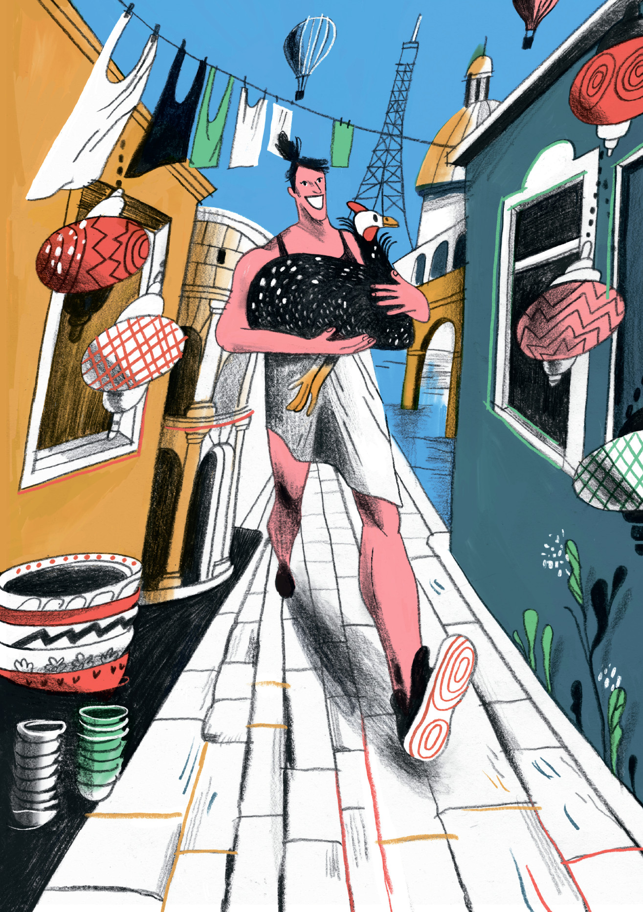 Я проснулся, я думал, от брачного воя стамбульских котов. Но это в котов играли дети. Мир тоже нарисовал ребенок: за белой занавеской – желтое солнце, синее море, зеленый газон и на нем коричневая женщина играла с разноцветным петухом.