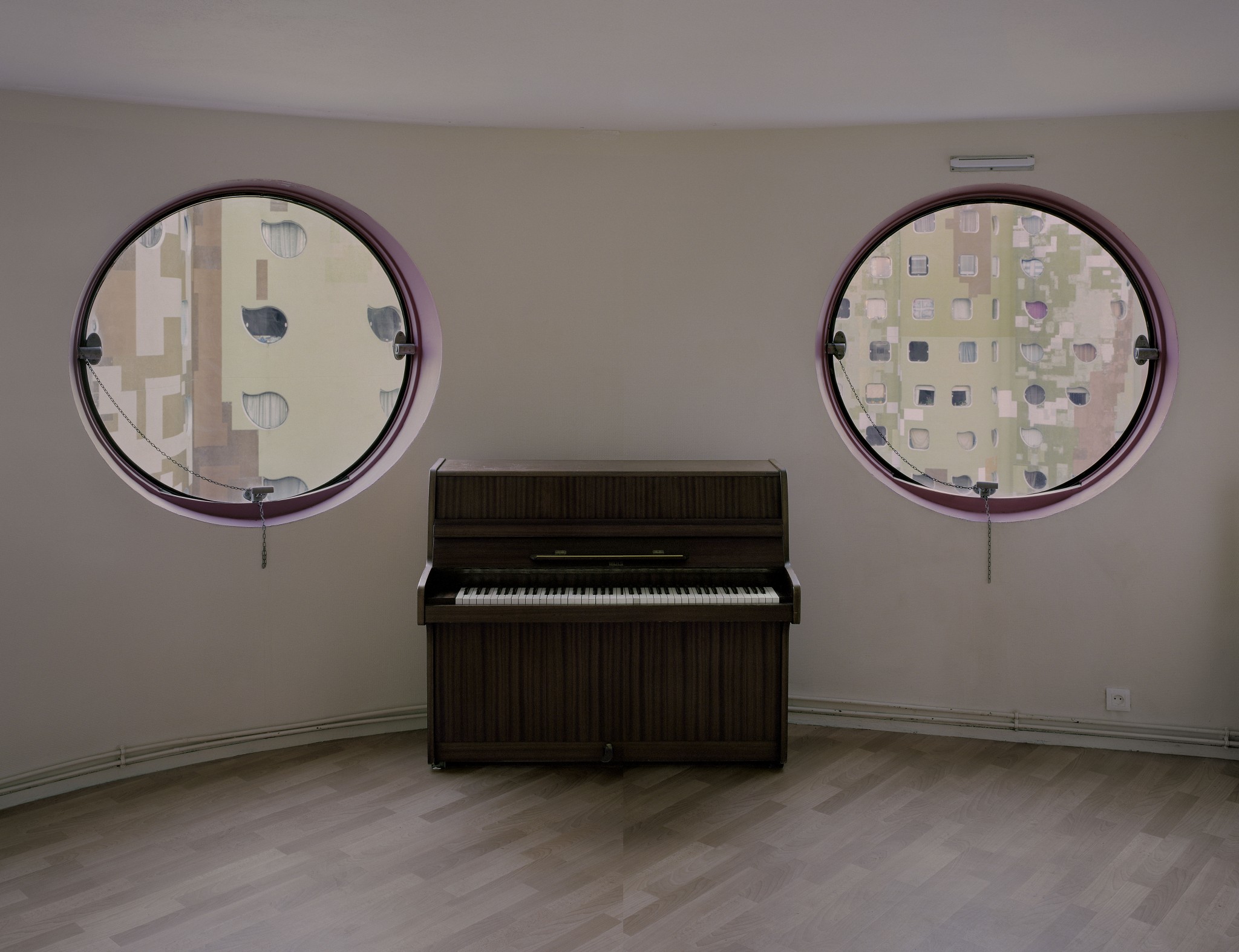 В литературном номере Esquire, посвященном бегству в разные уголки земли, французский фотограф выглядывает из окон чужих квартир, расположенных в жилом комплексе под Парижем. Футуристические дома в форме цилиндров, построенные еще в 1970-х, успели возненавидеть и возвести в разряд памятников культурного наследия.