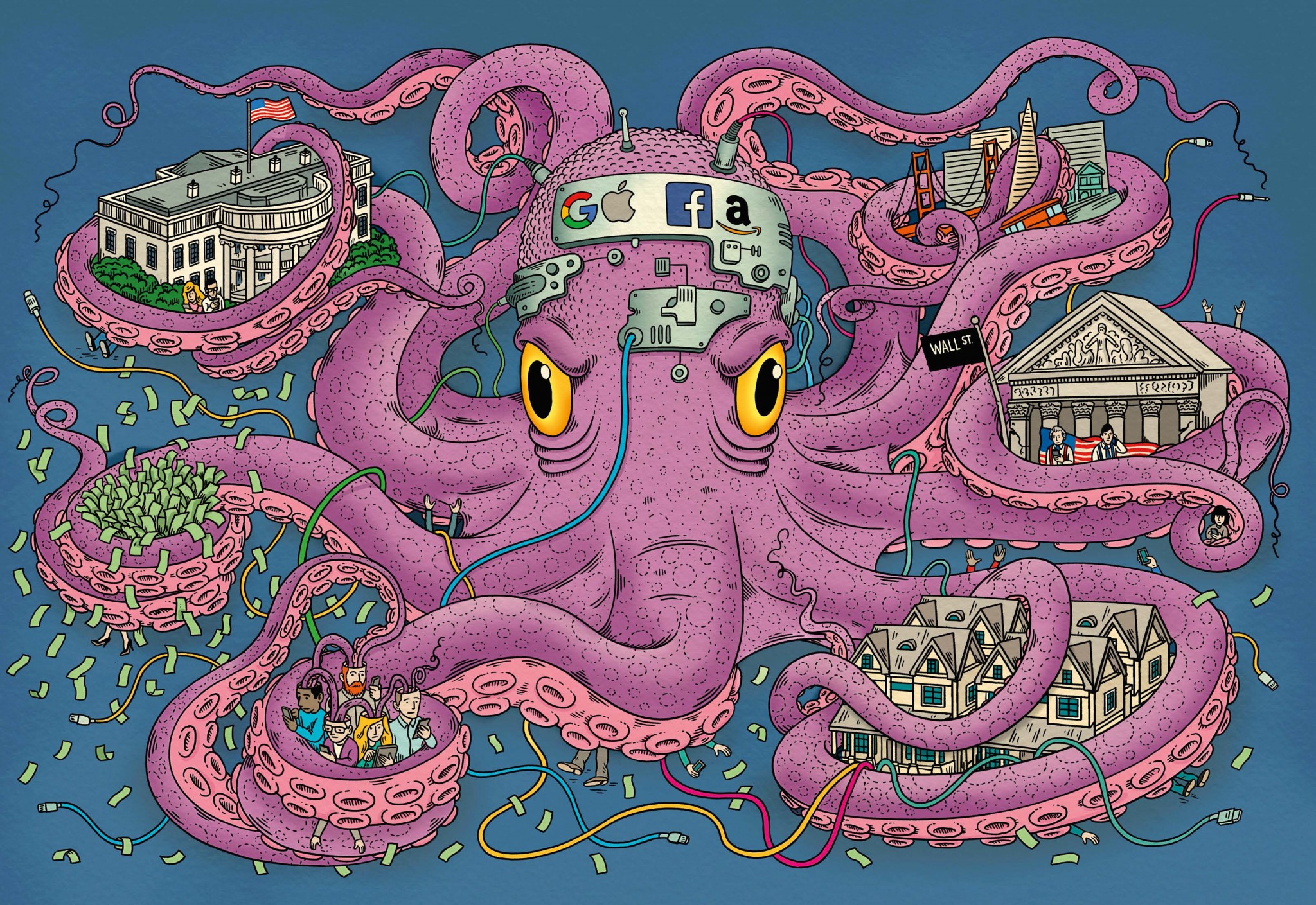 Богатство и влияние компаний «большой четверки» растет на глазах. Как это вышло? Продукты Google, Amazon, Facebook (соцсеть признана в РФ экстремистской и запрещена) и Apple стали незаменимыми – как органы нашего тела.