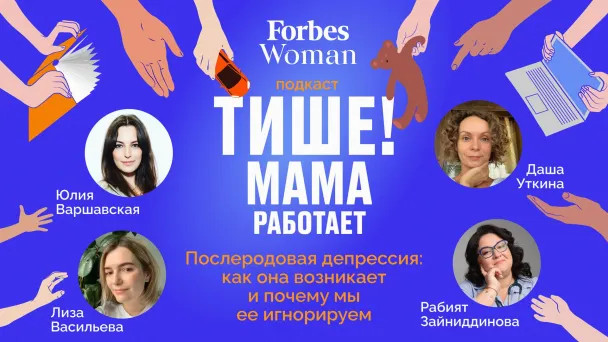 Подкаст «Тише! Мама работает» посвящен материнству и тому, что значит быть матерью в эпоху гендерного равенства. В каждом выпуске главный редактор Forbes Woman Юлия Варшавская будет обсуждать с экспертами вопросы, волнующие каждую современную женщину, которая одновременно строит карьеру и воспитывает детей. Во втором выпуске главный редактор Forbes Woman Юлия Варшавская беседует с доулой и психологом Дарьей Уткиной, кандидатом медицинских наук, педиатром Рабият Зайниддиновой и Елизаветой Васильевой, которая пережила послеродовую депрессию и стала героиней книги «Мама на нуле».