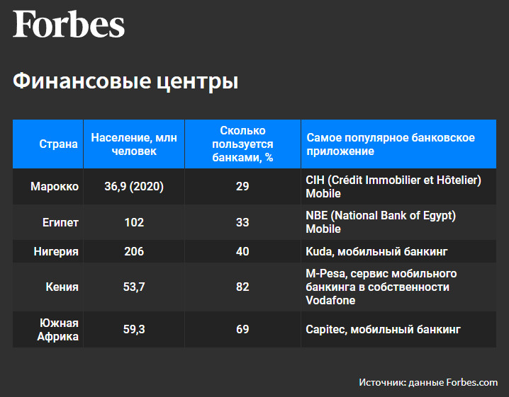 Доступ к банкам имеют и пользуются их услугами лишь около 40% от населения Африки численностью 1,4 млрд человек. Это делает континент богатой территорией для финтех-стартапов, стремящихся обеспечить доступ к финансовым инструментам сотням миллионом африканцев через мобильные телефоны. Ниже ― страны, где финансовые услуги развиты лучше и хуже всего, и приложения, которыми пользуется их население.