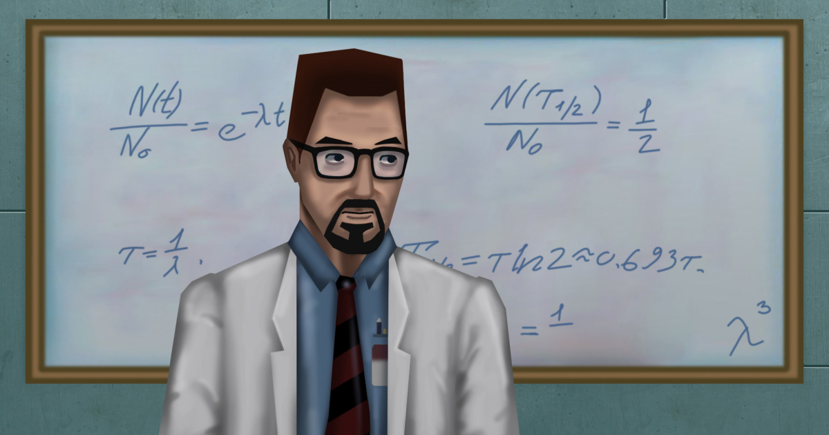 Все изменилось с выходом Half-Life в 1998 году. Основной протагонист (в отдельных играх и дополнениях мы играем за иных персонажей) – молчаливый физик-теоретик Гордон Фримен. Исходя из неких сценарных соображений, авторы игры отправили теоретика в самое сердце эксперимента физики высоких энергий в роли лаборанта. Как водится, эксперимент идет не по плану (никогда не отправляйте теоретика делать важный эксперимент! — прим. авт., физ.-теор.) и вызывает разрывы в тканях реальности — каскадный резонанс (хотя более правильным вариантом перевода термина «resonance cascade» был бы «каскад резонансов»), в результате чего на Землю вторгаются существа из иного измерения.