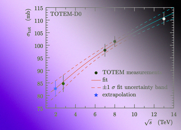 Особый интерес для физиков представляют упругие столкновения протонов. Их рассеяние друг на друге при низких энергиях определяется электромагнитным и сильным взаимодействиями: первое осуществляется за счет обмена фотонами (переносчиками этого взаимодействия), а второе — за счет обмена виртуальными мезонами, в частности, пионами (которые, к примеру, отвечают и за взаимодействие протонов и нейтронов в ядрах). Но с ростом энергии сталкивающихся протонов все большее значение обретают эффекты, предсказываемые квантовой хромодинамикой. Согласно этой теории, при энергиях порядка нескольких тераэлектронвольт процесс упругого столкновения протонов осуществляется посредством обмена глюонами — переносчиками сильного взаимодействия.