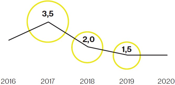 Статистика 37% составил рост выручки Yandex N. V. в 2019 году в рублевом выражении.
