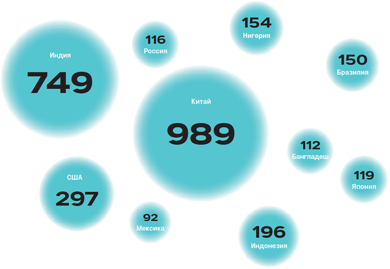 Количество интернет-пользователей в мире, млн