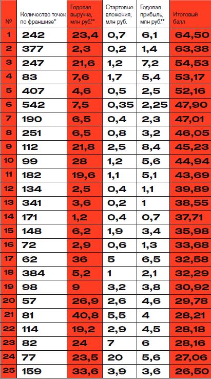4707 франчайзинговых точек у 25 компаний рейтинга