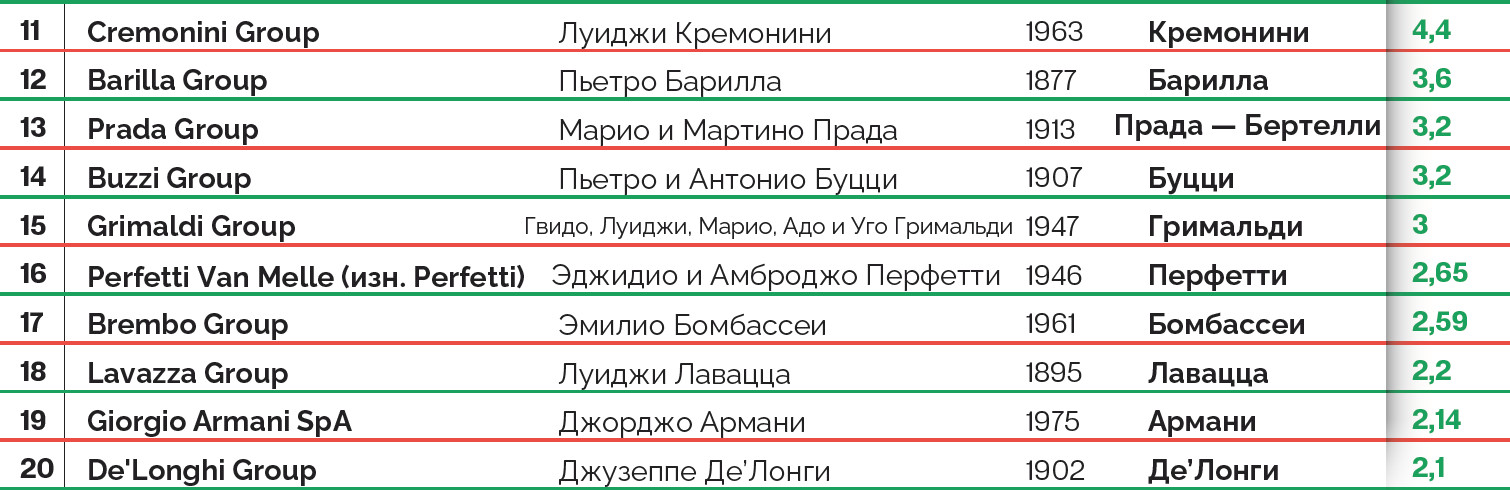 Многие достижения бренда Made in Italy — от автомобилей и продуктов питания до одежды и предметов роскоши — имеют одну общую черту. Это семейные предприятия. Forbes составил рейтинг 20 крупнейших компаний, принадлежащих итальянским семьям.