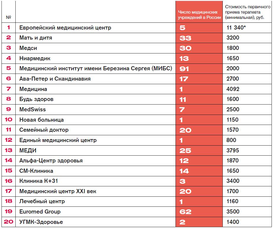 Forbes составил первый рейтинг частных медицинских компаний.