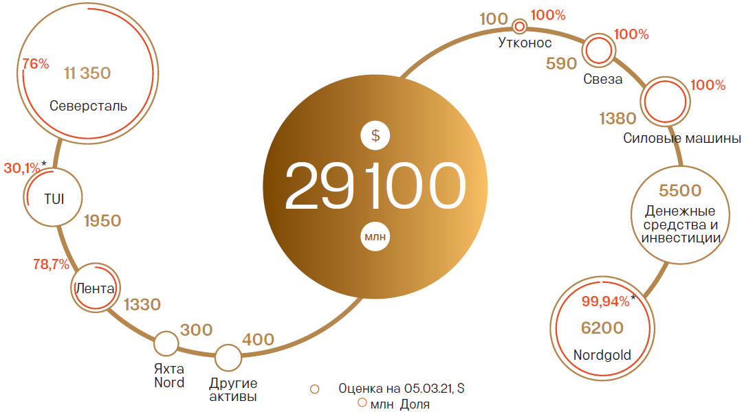Стоимость активов Алексея Мордашова в 2021 году