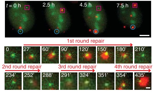 На эффективность редактирования генома при помощи CRISPR-Cas9 влияет множество факторов, и один их них — время образования молекулярных комплексов. На то, чтобы комплекс РНК-Cas9 распознал мишень, связался с ней и осуществил разрез, требуется время. В одних клетках это происходит быстрее, в других медленнее, или вообще не происходит. Следствием этого, в частности, может быть проблема мозаичности эмбрионов, в результате которой разные клетки будущего организма содержат разные варианты гена. Даже в одной и той же клетке разные копии гена на двух хромосомах могут разрезаться с разной скоростью и эффективностью. Чаще всего случается так, что одна копия гена уже порезалась и «зашилась», а до другой комплекс вообще не добрался. По этой причине редактирование диплоидных клеток представляет определенные затруднения.