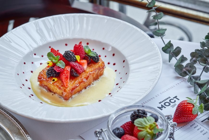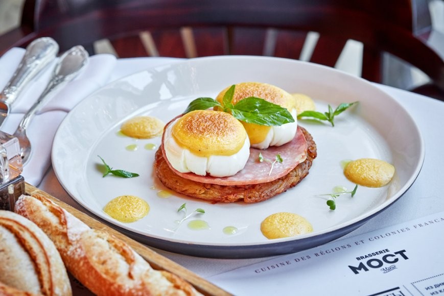 Меню с региональной кухней Франции от шеф-повара Жан-Люк Молля способствует тому, чтобы утро задалось, а завтрак прошел в романтичной атмосфере Парижа. Взбитый творог «Фонтенбло» с зеленью и перцем (350 руб.) или ягодами (690 руб.), ассорти французской выпечки, французский тост с ягодами и ванильным соусом (550 руб.), вафли с цитрусовым и лавандовым медом (350 руб.) — далеко не полный ассортимент завтраков. Наш фаворит — яйцо пашот с рататуем и базиликом (690 руб.).