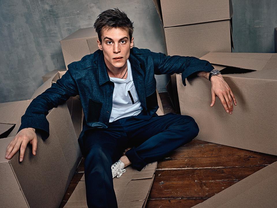 Рубашка, Trussardi; футболка, кеды, все Tommy Hilfiger; брюки, Louis Vuitton; часы, TAG Heuer.