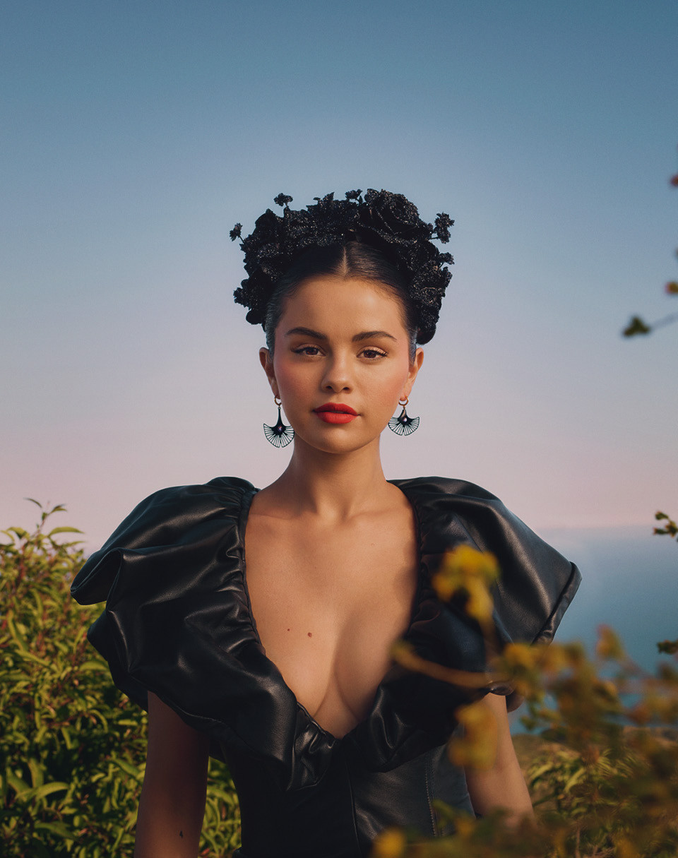 Селена рассказывает, как прошли съемки для журнала: впервые на фотосессии она красилась косметикой собственного бренда Rare Beauty, который запустила год назад. Rare (редкий, особенный в переводе с английского) — не только название марки, это в первую очередь заглавие ее альбома, вышедшего в 2020‑м. А еще слово, которое лучше других отражает цели и стремления Селены Гомес: «Оно описывает ту личность, которой я хочу быть. Я искренне считаю, что быть уникальным, непохожим на других — здорово. Не нужно пытаться кому-то подражать».