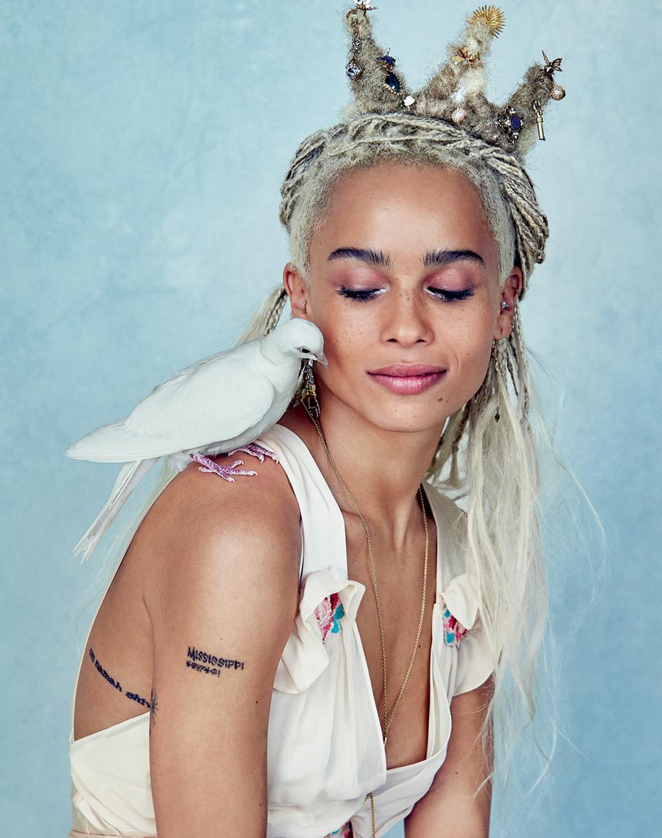 За столиком невероятно модного кафе в центре невероятно модного района Уильямсберг я жду невероятно модную Зое Кравиц. И вот она заходит, живое воплощение всех главных трендов хипстерского Бруклина: черная толстовка, длинные платиновые косы, винтажные кольца на тонких пальцах и артистично-концептуальные татуировки по всему телу. Уже через пару минут выясняется, что действительно красивая, популярная и модная дочка Ленни Кравица и Лизы Боне ни на йоту не похожа на стереотипного заносчивого миллениала, которого интересуют только красота, популярность и мода. Зое — очень милая и даже «свойская», насколько это вообще возможно в ее положении. «Я думаю, люди видят меня какой-то уж совсем диковиной, но это не вполне правда», — говорит она.
