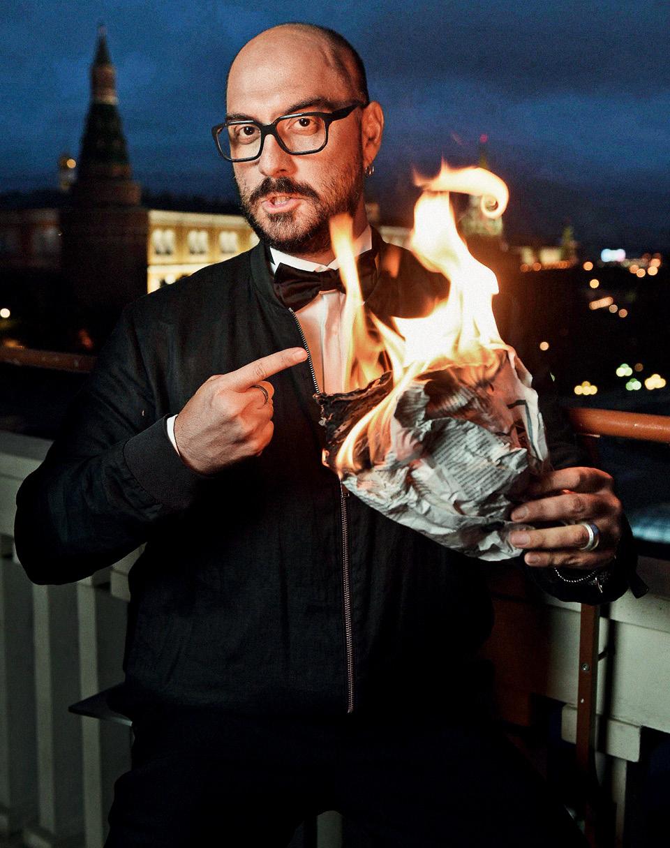 В артистических руках Кирилла Серебренникова и так все горит. А в этом случае в пальцах худрука «Гоголь-центра», доверчиво повернувшегося спиной к Кремлю на балконе отеля Four Seasons, пылает газета «Правда». Кто, как не скандальный режиссер, согласился бы нарушить сразу два из двух правил гостиницы, запрещающих выходить на балкон в ночное время и курить.