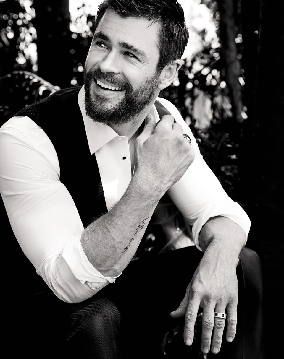 Мы с Крисом уже виделись год назад, когда он, бог грома и мускулов, восседал на горней трибуне стадиона в Мельбурне, болея за свою любимую команду Western Bulldogs. Команде тогда удалось невозможное — прервать трофейную засуху длиной в 62 года и выиграть гранд-финал Австралийской футбольной лиги. Кулаки сжимались, бицепсы вздымались, глотки рвались — Крис, его брат Лиам и еще десятки тысяч фанатов «Бульдогов» сходили с ума от счастья. «Невероятный день», — вспоминает Крис, пока наш фэшн-ассистент натягивает ему на ногу ботинки Ferragamo торовского размера. Где был в тот день Люк? Вот-вот, а вы говорите — старший умный был… Но дело в том, что Люк болеет за Essendon; кроме того, он как раз был занят, докладывая Джимми Киммелу о том, как до сих пор заставляет Криса и Лиама рыдать.