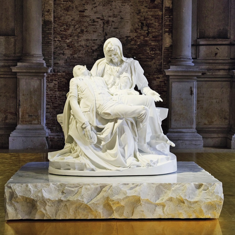 Когда я замечаю, что святая получилась уж больно сексуальной, Фабр возражает: «Святая Аполлония на этой картине выглядит как современная женщина — сильная и независимая. Почти Тина Тернер! На другой картине вы видите Христа с микрофоном — он как Боно. Христос одет в костюм антверпенского дизайнера Вальтера ван Бейрендонка, который шил концертные наряды для Боно. В центре, где раньше был Рубенс, я сделал бриллиант — это отсылка к священному свету Рубенса, но также символ Антверпена и богатой еврейской общины. Заберите бриллианты — и Антверпен бы обанкротился».